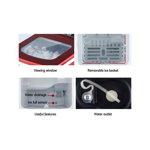 Devanti 2L Ice Maker Portable Ice Cube Machine – Red