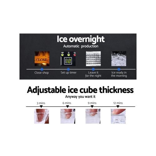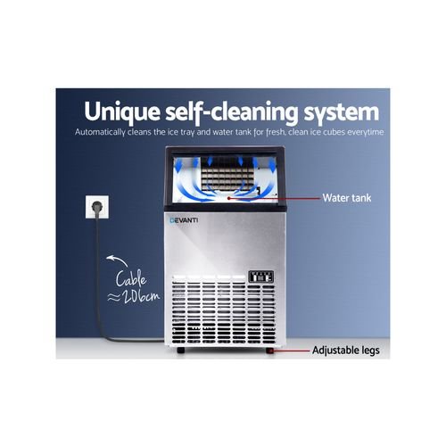 Devanti 45KG Commercial Ice Maker Machine Portable Ice Cube Tray Stainless Steel