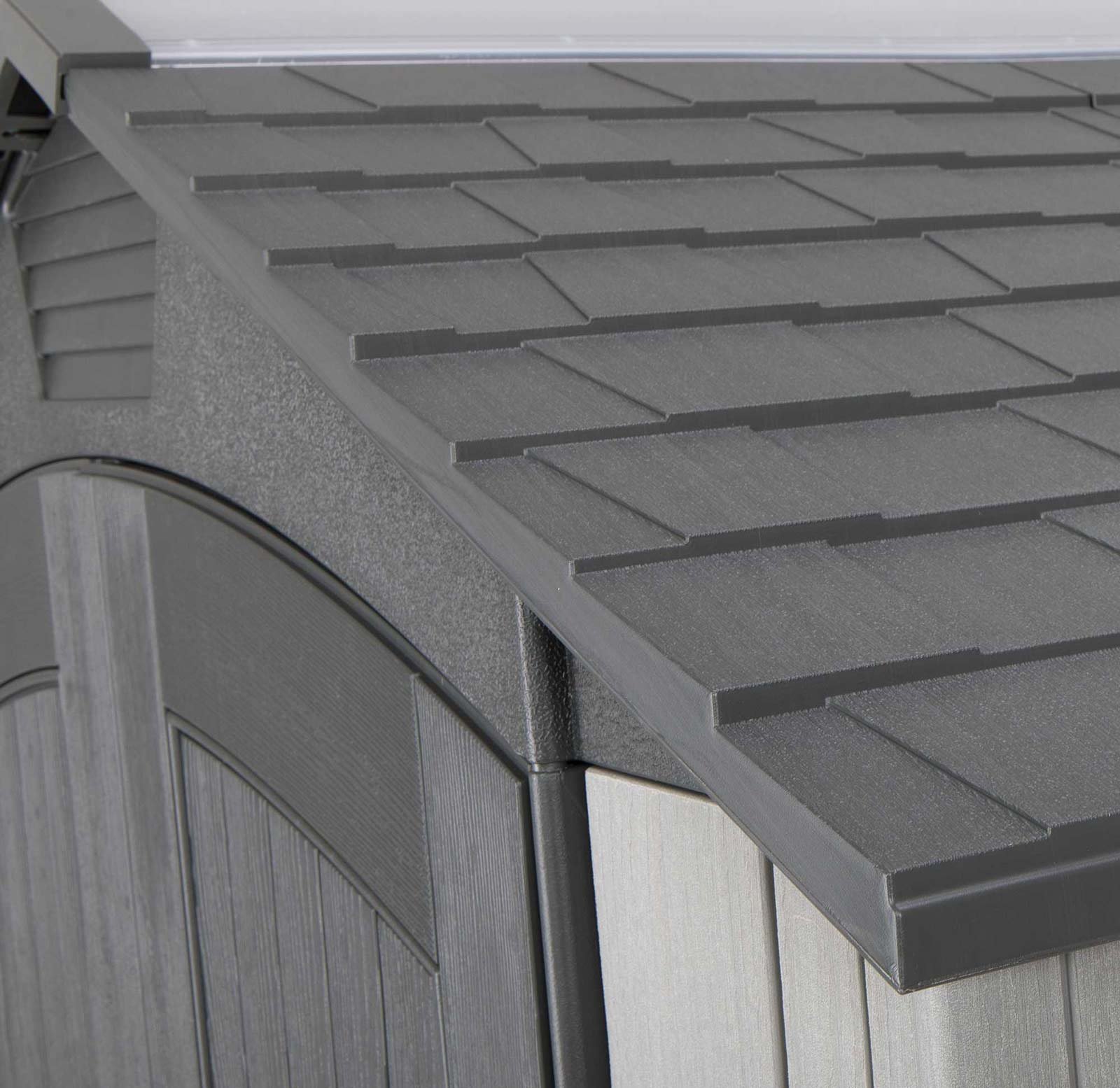 The LIFETIME 7′ x 12′ foot PLASTIC GARDEN SHED – a high quality outdoor storage shed to keep your garden equipment, tools, bikes and toys safe, dry and secure. The molded woodgrain wall panels and simulated shingle roof ensure that it is an attractive addition to your property as well as a solution to your storage needs.
