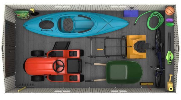 A stylish outdoor storage shed to keep your garden equipment, tools, bikes and toys safe, dry and secure. This shed is made in the U.S.A. – you can be confidant in the quality and features of an American made product. The moulded woodgrain wall panels and simulated shingle roof ensure that it is an attractive addition to your property as well as a solution to your storage needs.Buy LIFETIME 8’x15′ GARDEN SHED Online