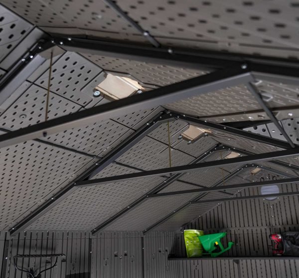Each wall panel interlinks with adjoining panels and locks into the floor then abutting underneath the roof structure to eliminate rainwater leaks at the wall-roof connection. High grade steel screws secure the panels to the shed’s steel framework resulting in a sturdy overall construction.