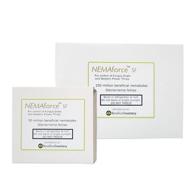 NEMAforce SF (Steinernema feltiae) are naturally-occurring parasitic nematodes that prevent and control larval stages of fungus gnats, shore flies, and the adult, larval, and pupal stages of western flower thrips (Frankliniella occidentalis). Released in their juvenile infective stage, they search out and enter insect pests. Once the nematodes have entered their prey, they release a symbiotic bacteria that quickly kills the targeted insects.