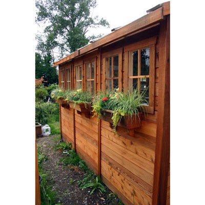 The Sunshed has 10 aluminum-frame, tempered glass windows along the side, and 6 Lexan skylights on the roof, which allow 90% of the light through while blocking harmful UV rays, keeping plants, equipment, and people protected. The 16″ wide L-shaped Red Cedar wall workbench is great for getting jobs done, for relaxing and eating at, or, if desired, can even serve as a shelving unit for plants. The Sunshed also comes with 7 flower boxes and a 31″ wide Dutch door, which makes for easy and comfortable access while also giving the shed a charming look.