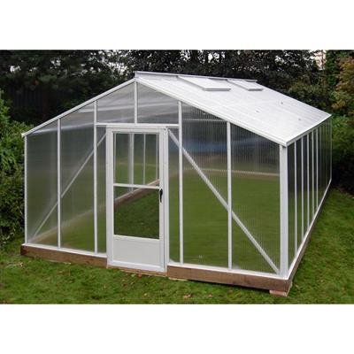 The Traditional Straight Eave Greenhouse is specifically engineered for quality and strength and designed to withstand all weather conditions. White heavy duty aluminum structure features 6mm twin-wall polycarbonate covering, extra high 5′ 6″ sidewalls for side shelving, roof bars designed to carry large hanging baskets, double wide greenhouse individual roof vents for proper ventilation, and a premium storm door with adjustable screened sliding window. This greenhouse offers the widest selection of sizes than any other kit on the market. The Traditional Straight Eave Greenhouse lengths are extendable in 2′ increments to allow for future expansion. The included instructions and step-by-step assembly video make these greenhouses easy to assemble.