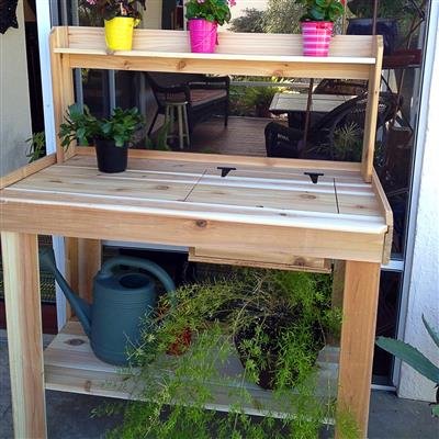 This stylish and design inspired Gardener’s Table with Tin Surface is what every gardener needs! This durable table has been treated for protection against wood rot and decay and made from FSC timber from well managed forests. The clean-lined tin work surface will provide added protection while still allowing for easy cleanup. The slatted bottom shelf is ideal for storing tools and planting accessories as well as providing space for potting plants and transplanting seedlings.